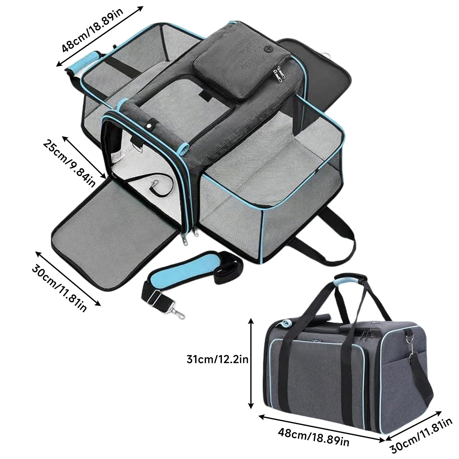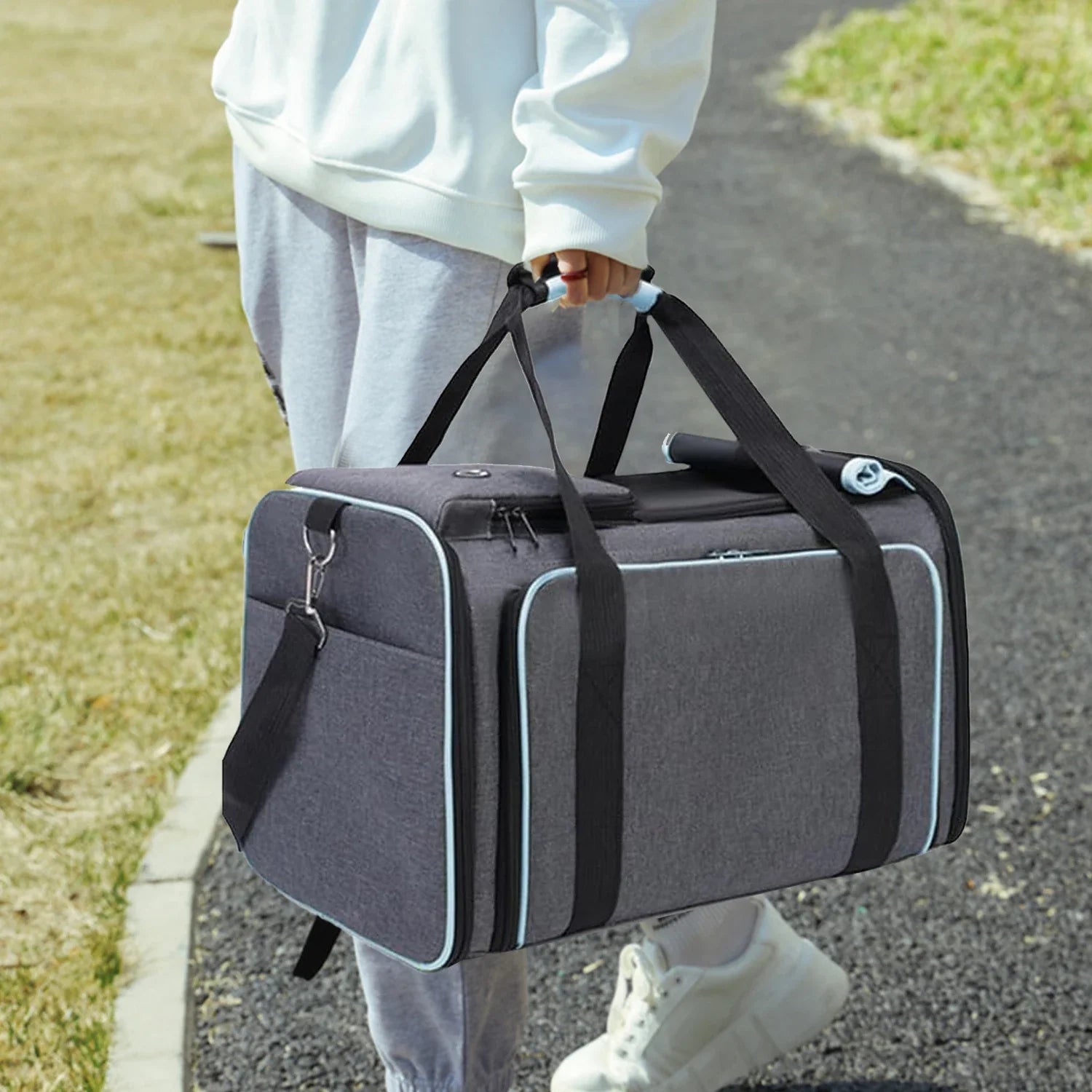 Kan worden gebruikt als boodschappentas of als schoudertas met verstelbare riem. De handgrepen met pad kunnen voor een aangenaam gevoel in de hand worden geplakt. Perfect voor het vervoer met auto, trein, vliegtuig enz. Je kunt niet alleen voor huisdieren gebruiken, maar ook andere voorwerpen zoals kleding, schoenen enz. opladen.
