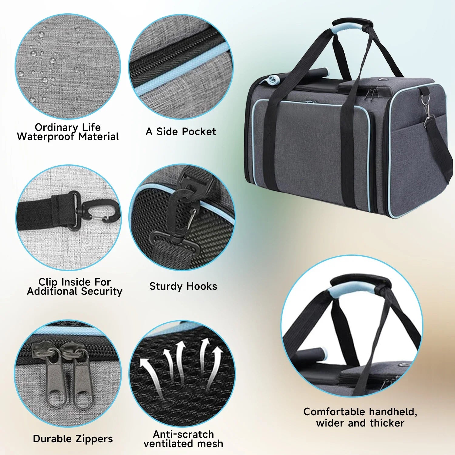 Praktisch en draagbaar: de afmetingen van dit product bedragen ca. 16,2 x 9,45 x 12,1 inch. Aanbevolen voor huisdieren tot 16 lbs (maximale belasting bedraagt 35 lbs). Meet de grootte van je huisdier en reserveer voor aankoop extra ruimte voor je huisdier, als de drager niet voor je huisdier is ingesteld. Wordt geleverd met een opvouwbare blauwe kom als cadeau. Met deze lichte tas kun je je huisdier overal mee naartoe nemen.